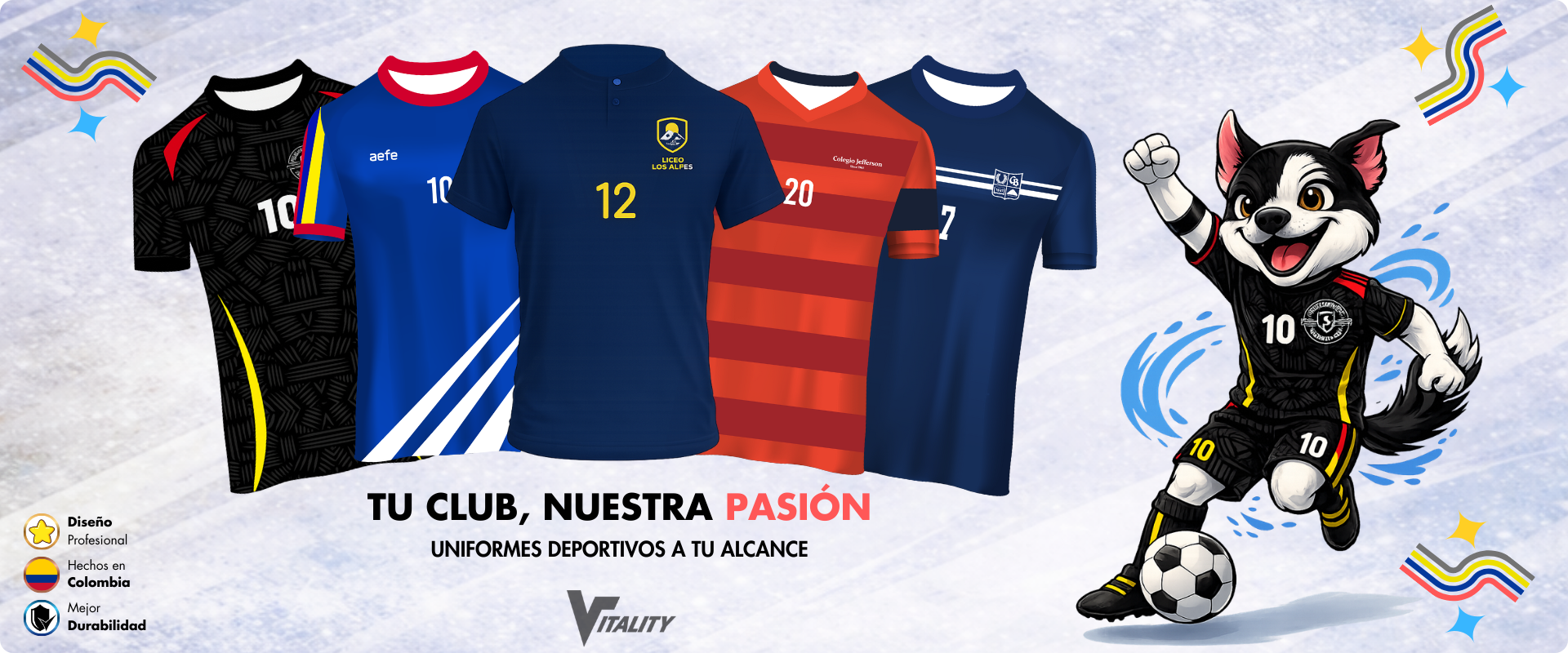 En Uniformes Vitality, llevamos la pasión por el deporte a otro nivel con uniformes personalizados que reflejan la identidad y estilo de tu club. Ya sea para fútbol, baloncesto, voleibol o cualquier deporte, nos aseguramos de que cada detalle sea único, adaptado a las necesidades de tu equipo.